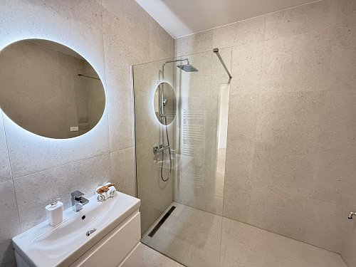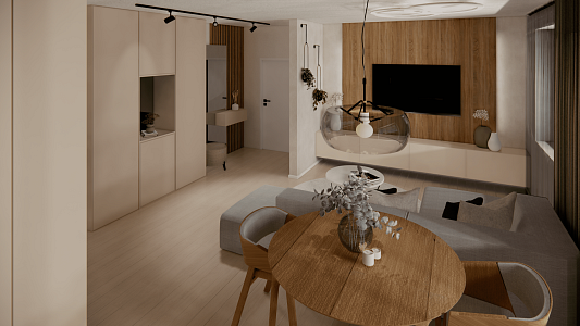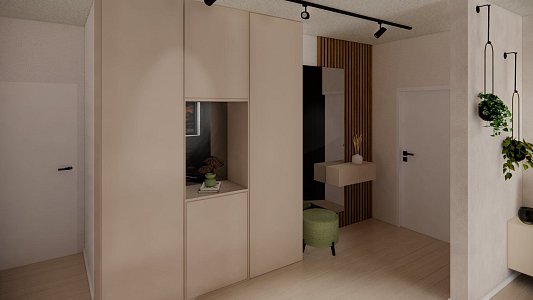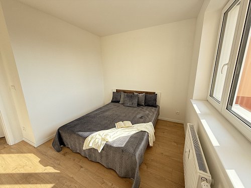 Dispozícia bytu zahŕňa priestrannú obývačku, ktorá je prepojená s kuchyňou a jedálenskou časťou – ideálnym miestom na spoločné chvíle a relax. Byt má samostatnú izbu, ktorá slúži ako spálňa s dostatkom priestoru na veľkú vstavanú skriňu pre pohodlné uskladnenie všetkých Vašich vecí. Z obývacej izby alebo spálne sa otvára výstup na krásnu južne orientovanú loggiu o výmere 4,74 m², z ktorej si môžete užívať pokojný výhľad na zeleň vo vnútrobloku. Kúpeľňa je praktická, moderne riešená a ponúka všetko, čo potrebujete – záchod a sprchový kút s kvalitnými obkladmi, ktoré dodávajú priestoru elegantný a nadčasový vzhľad.