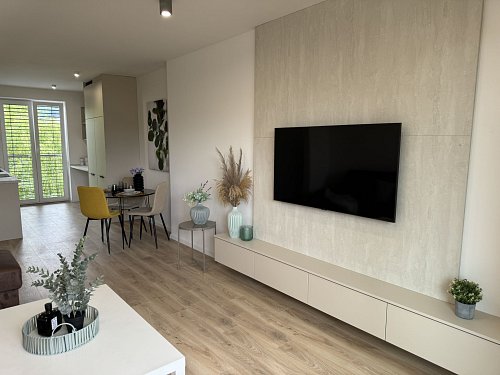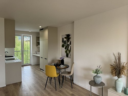 Byt je skolaudovaný v roku 2024 v energetickej triede A, preto má veľmi nízke mesačné náklady (približne 120€) a je pripravený na okamžité nasťahovanie.