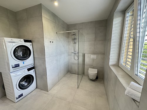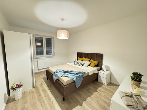 Samostatná spálňa ponúka dostatok priestoru pre veľkú manželskú posteľ pre pohodlný spánok, šatníkovú skriňu, pracovný kút či toaletný stolík. V byte nájdete aj kúpeľňu so sprchovým kútom, toaletou a oknom, čo je v bytových domoch skutočnou raritou. Nová práčka aj sušička značky Electrolux taktiež ostávajú vo vybavení bytu. Samozrejmosťou sú aj praktické podomietkové predokenné žalúzie, vďaka ktorým si jednoducho regulujete svetlo aj súkromie.