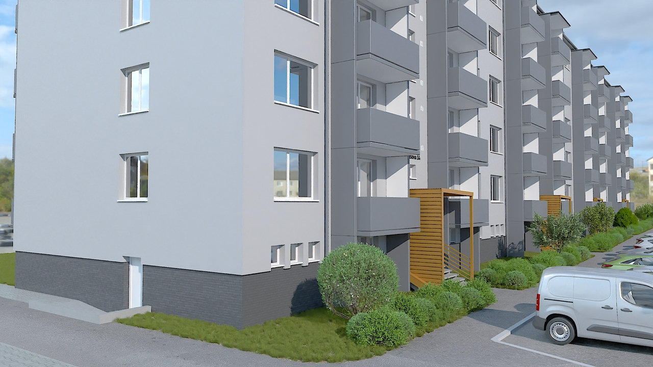 K bytovému domu developer vybuduje 25 nových parkovacích miest, čo zabezpečí komfortné parkovanie pre všetkých obyvateľov.