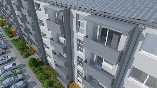 Nadstavby bytových domov od firmy MPORTE prinášajú úplne nové byty s modernými dispozíciami, priestrannými loggiami o výmere 4,74 m² a nízkymi mesačnými nákladmi v triede A0.