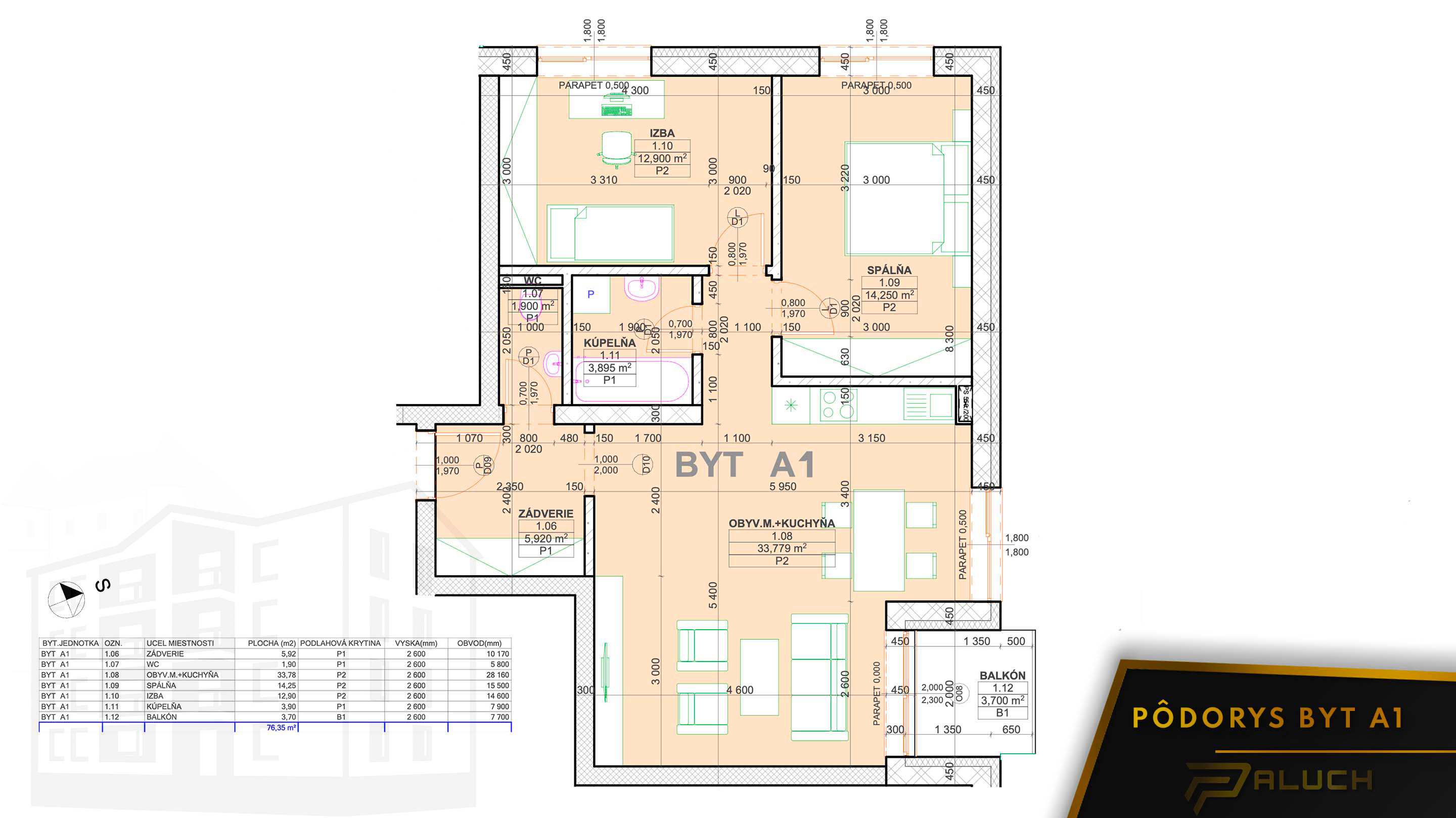 3,70 m² + veľká terasa | REZERV. | BYT A1 | |