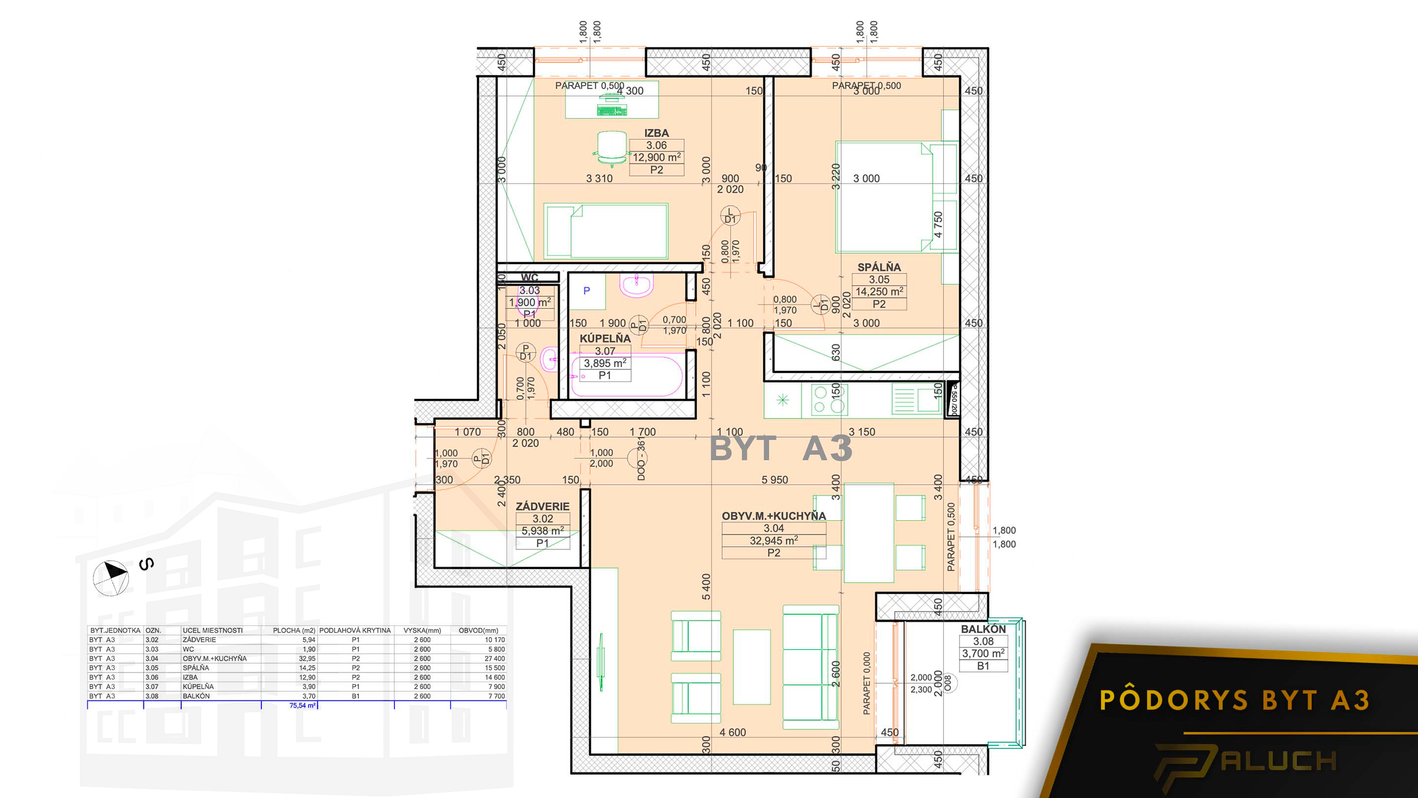 3,70m² | 211.900€ | Voľný | BYT A3 |