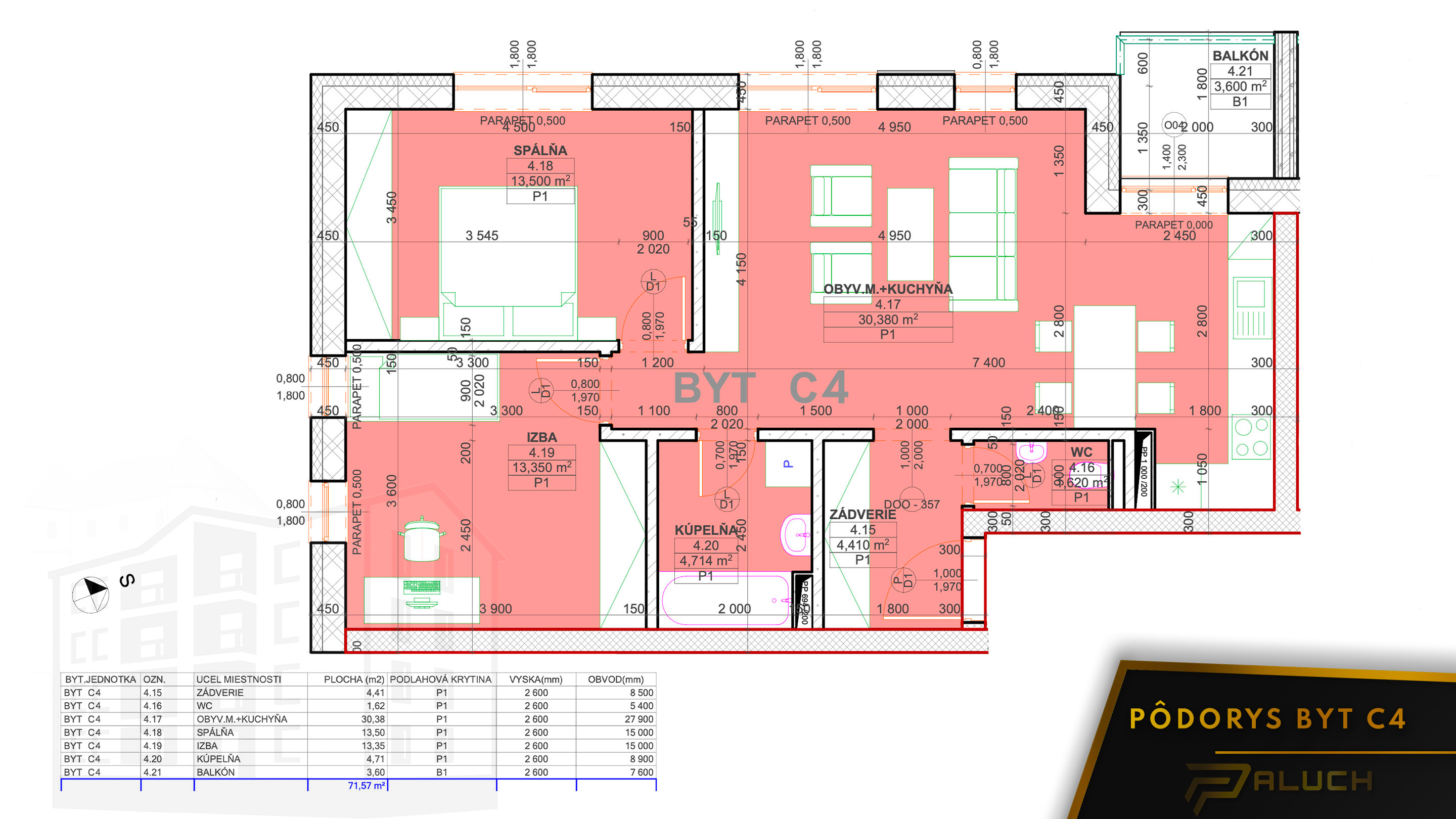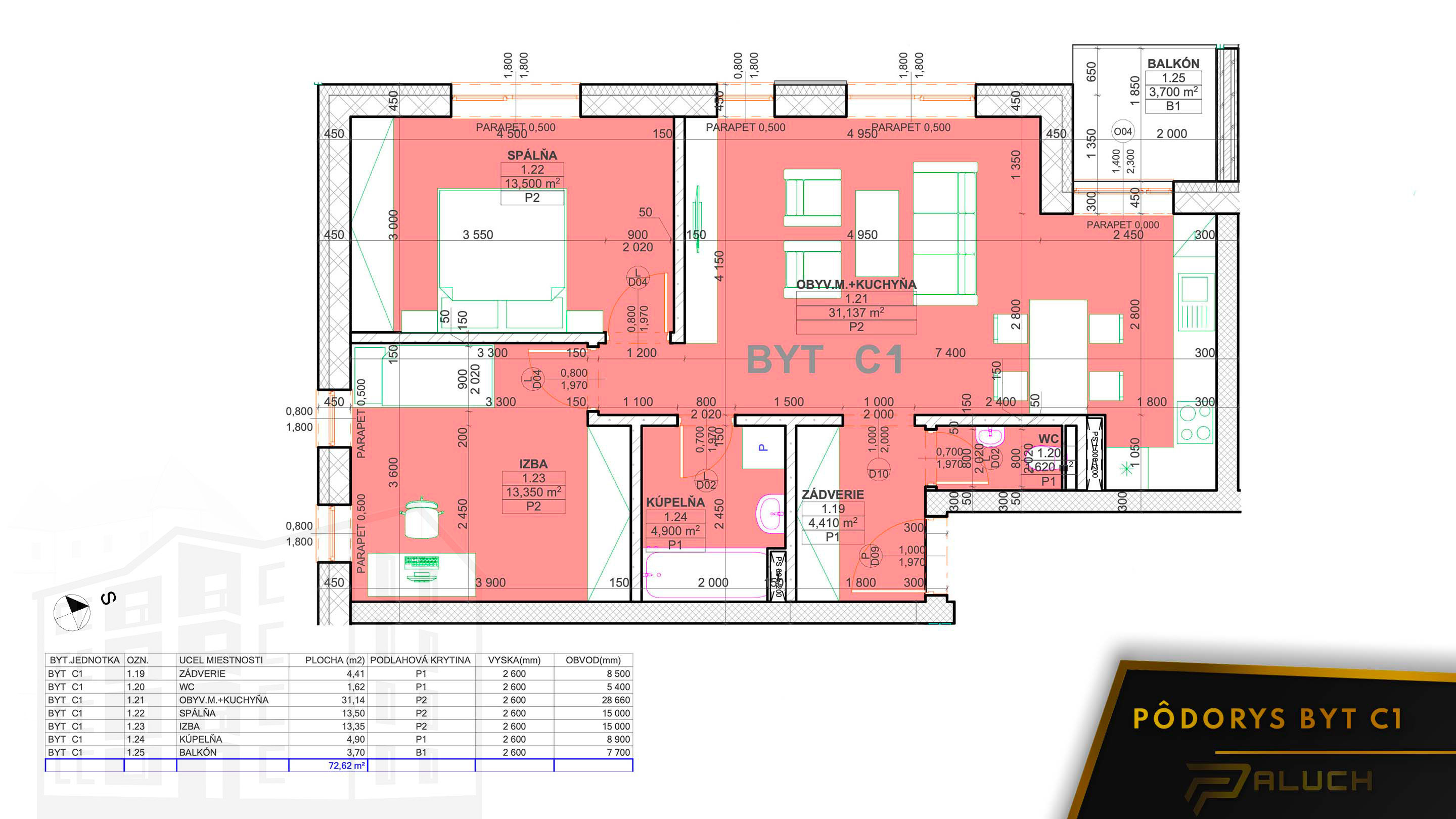 3,70m² + veľká terasa | REZERV. | BYT C1 | |