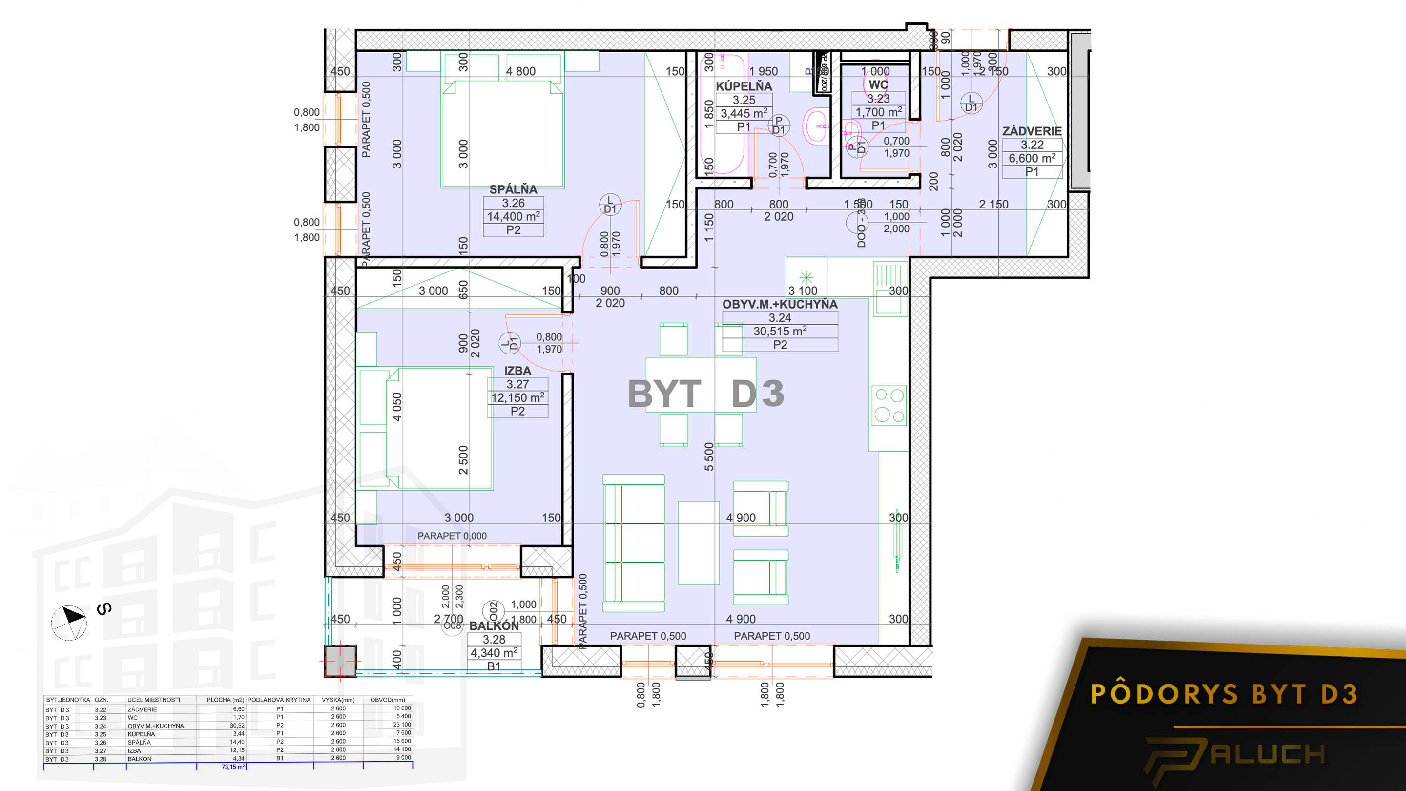 4,34m² | REZERV. | BYT D3 | |