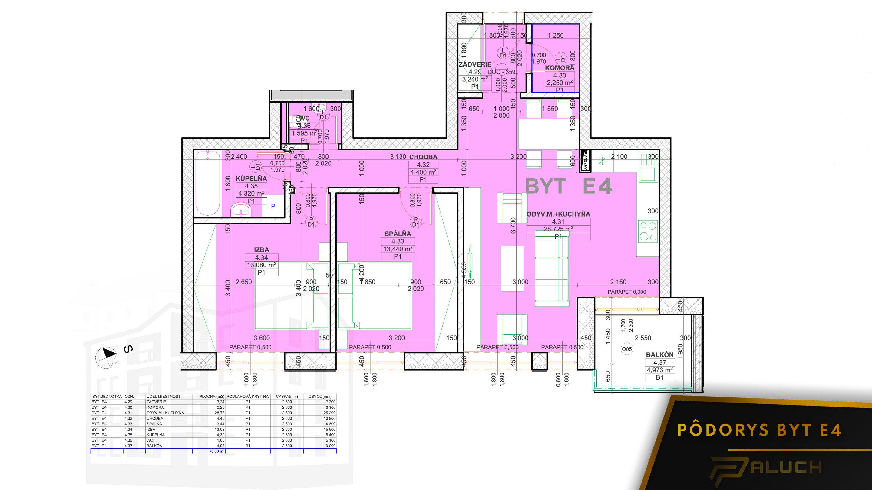 4,97 m² | REZERV. | BYT E4 | |