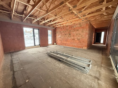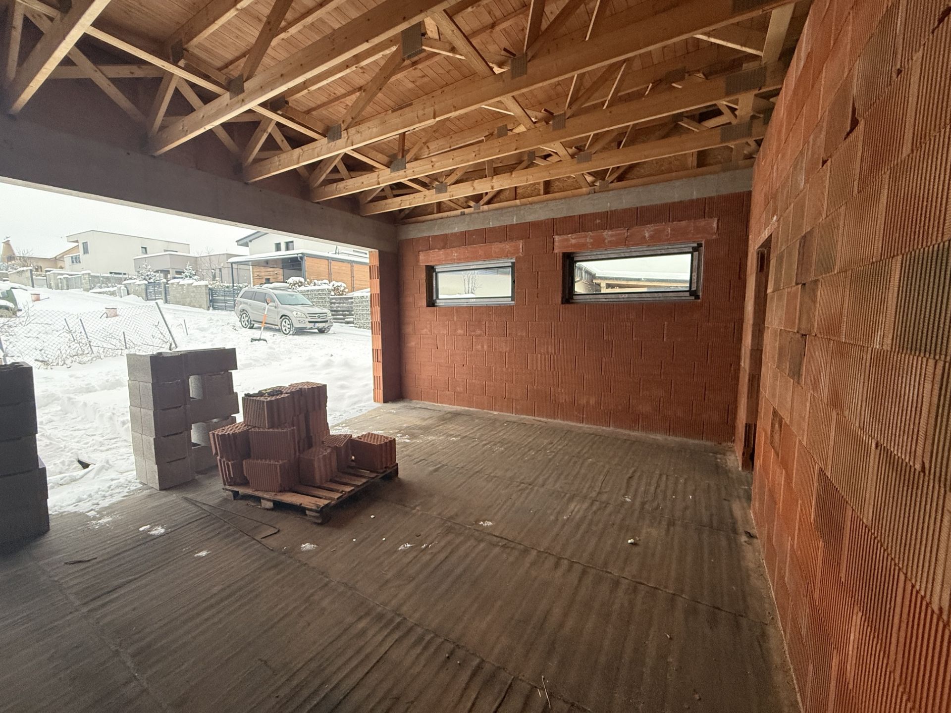 Dom je už postavený v štádiu hrubej stavby, vrátane garáže a osadených okien. Umožňuje Vám tak dokončiť si ho podľa seba, pričom dispozícia a konštrukčné riešenia sú pripravené na požiadavky moderného bývania.
